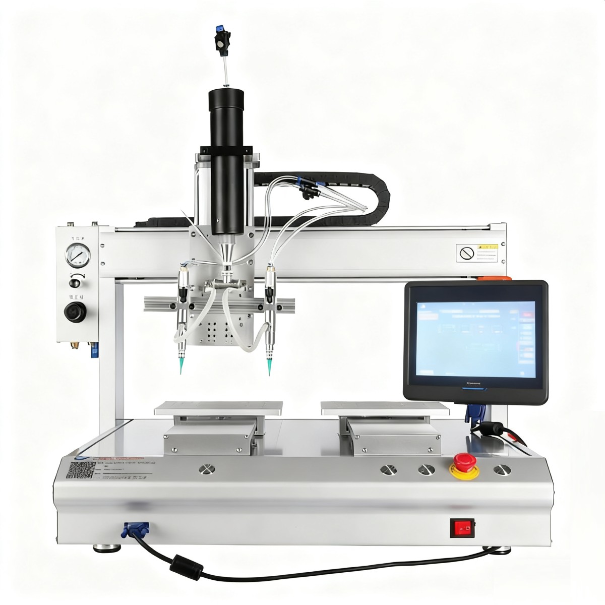 双工位双头点胶机是一种对流体进行控制的自动化机器,适用于流体点胶,自动化程度远高于手动点胶机。特点是点胶效率高,可实现机械化生产,操作方便。点胶机主要用于产品工艺中的胶水、油以及其他液体的粘接、灌注、涂层、密封、填充、点滴、线形/弧形/圆形涂胶等